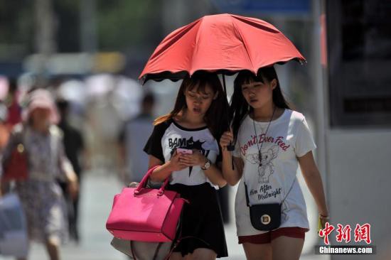 资料图:行人头顶骄阳出行。中新网记者 金硕 摄