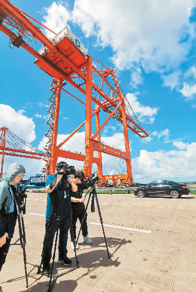 两岸媒体在钦州铁路集装箱中心站拍摄。