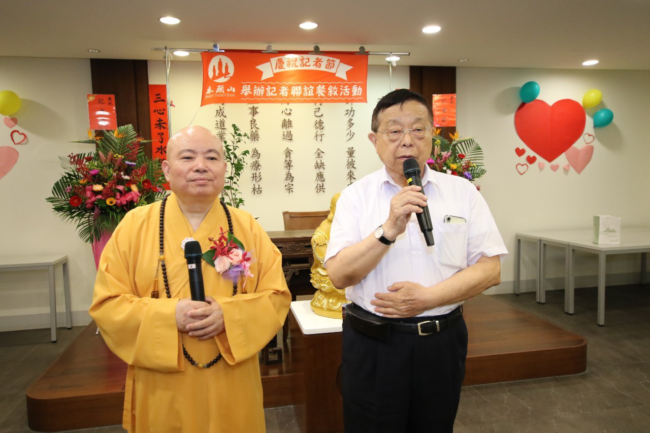 公元2020年8月29日世界聯合國家論壇報社創辦人周琮棠出席台中彌陀本願山講堂慶祝記者節的記者聯誼餐敘活動並致詞。