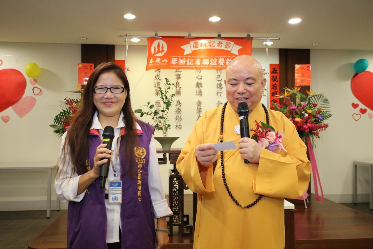 最後,張采明再度的感謝釋信願法師的發心,在記者節主辦這樣有意義的活動,並具體的表達法師對記者職份的尊重和禮遇。張采明社長還期許在場的每一位記者,能夠彼此連結,發揮正向的力量,使新興媒體經過努力後變為主流媒體,並與她共同書寫和見証我們這一代的歷史!
