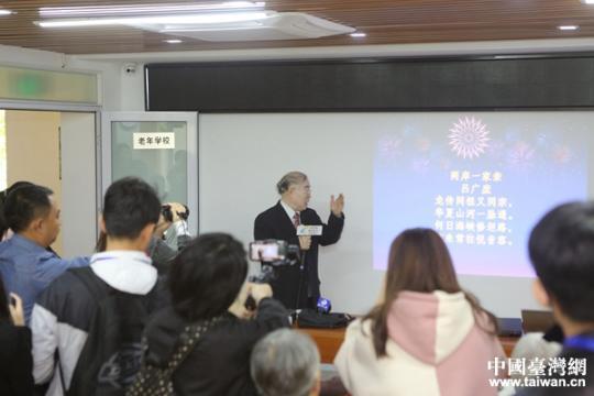 诗会吕广庶老师赋诗欢迎两岸记者,诗友与吕老师唱和。(中国台湾网 陈佳慧 摄)